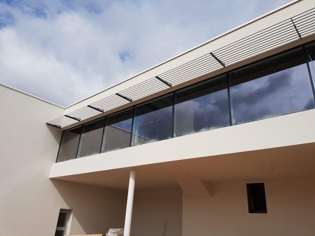 NLC engineers installed this continuous run of solar control panels to shade the windows of the administration offices for a new multi franchise car showroom in Exeter. The panels were fabricated using our 120mm elliptical blades fixed to laser profiled aluminium side frames.